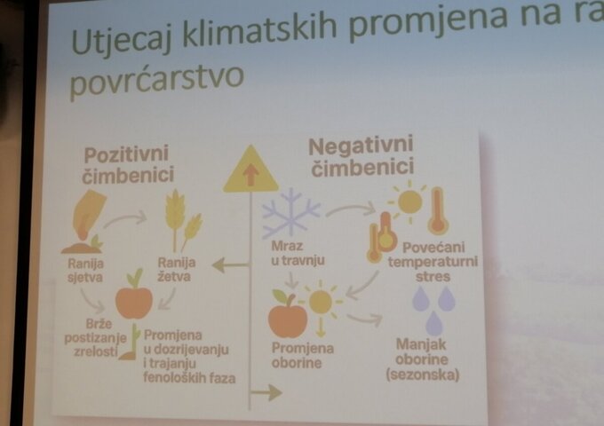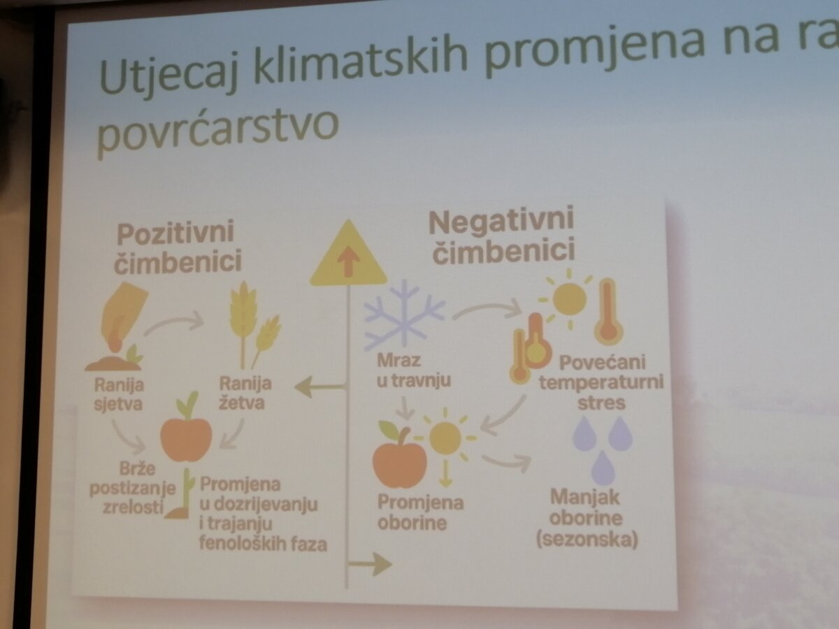 Na konferenciji su predstavljeni rezultati studije – povećanje maksimalnih temperatura, češće suše, veći broj vrućih dana te rizik od nestanka tradicionalnih kultura. Predložene su i konkretne mjere prilagodbe – nove sorte, promjene roka sjetve i žetve, modernizacija sustava navodnjavanja i zaštite usjeva.